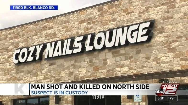 Tiệm Cozy Nails Lounge, nơi xảy ra vụ cãi vã dẫn đến hành động giết người. Ảnh: KSAT