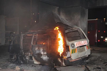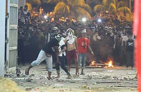 CĐV gây bạo loạn trong và ngoài sân.