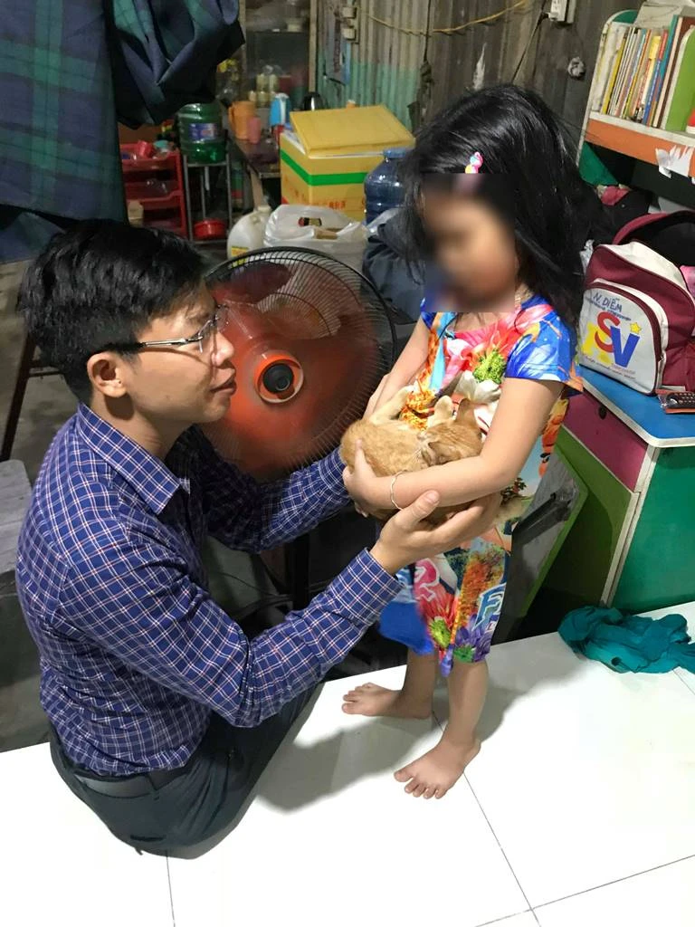 Luật sư Đỗ Ngọc Thanh trò chuyện với bé Ngọc Diễm.