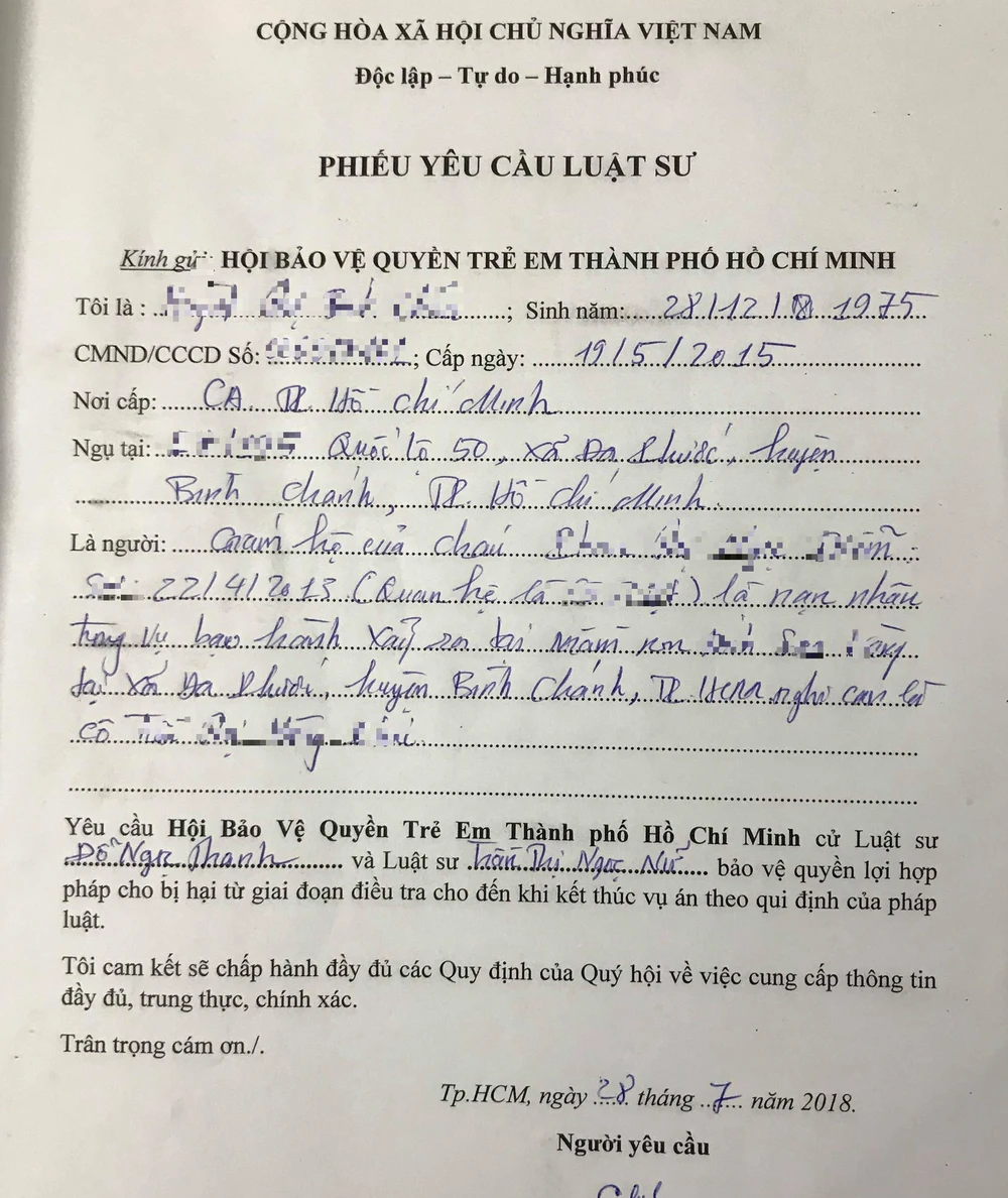 Hội Bảo vệ quyền trẻ em TP.HCM cho hay sau khi tiếp nhận đơn của gia đình bé Diễm sẽ tiến hành các thủ tục pháp lý để hỗ trợ, giúp đỡ cho bé.