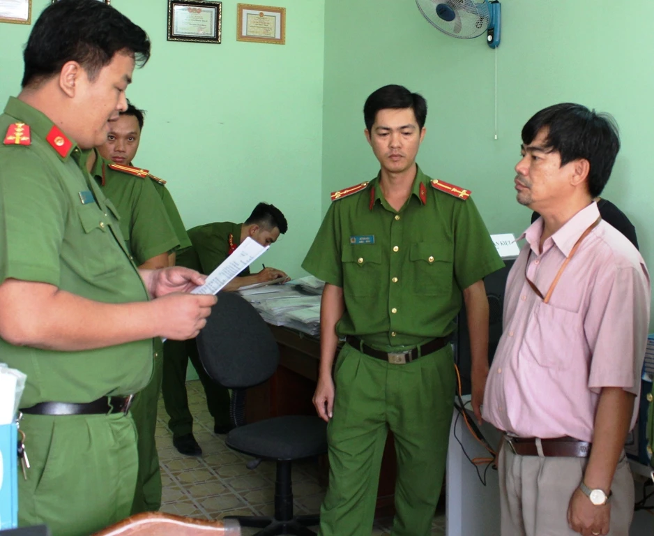 Ông Kiệt nghe tống đạt các quyết định khối tố vụ án, khởi tố bị can và lệnh bắt tạm giam. Ảnh: TÍN HUY