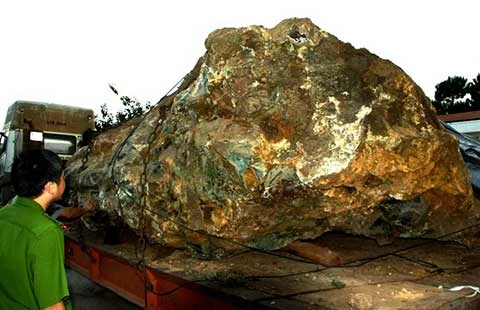 Hòn đá bán quý canxedon bị bắt giữ trên đường vận chuyển đi tiêu thụ. Ảnh: Đ.DŨNG