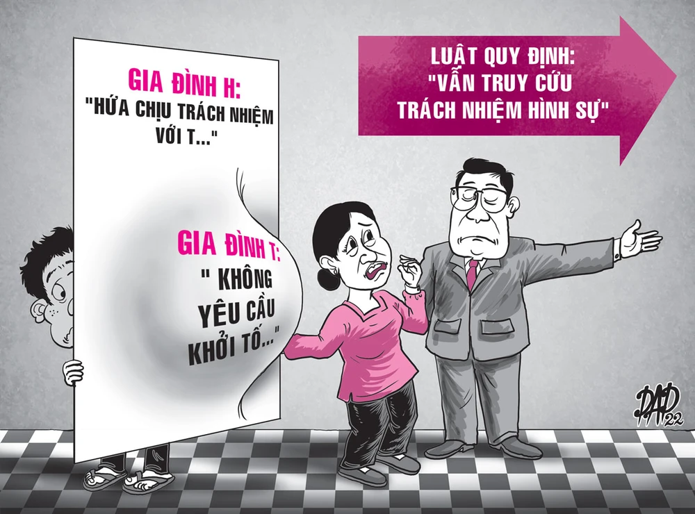Do đó, theo ThS Trần Thanh Thảo, trong trường hợp hành vi của H cấu thành tội phạm tại khoản 2 Điều 145 BLHS thì việc xử lý trách nhiệm hình sự sẽ không phụ thuộc vào yêu cầu của bị hại. “Tức là dù T hoặc người đại diện của T không yêu cầu khởi tố hoặc yêu cầu không xử lý hình sự đối với H thì các cơ quan có thẩm quyền vẫn phải tiến hành các thủ tục pháp lý để truy cứu trách nhiệm hình sự đối với H” - ThS Thảo nói.