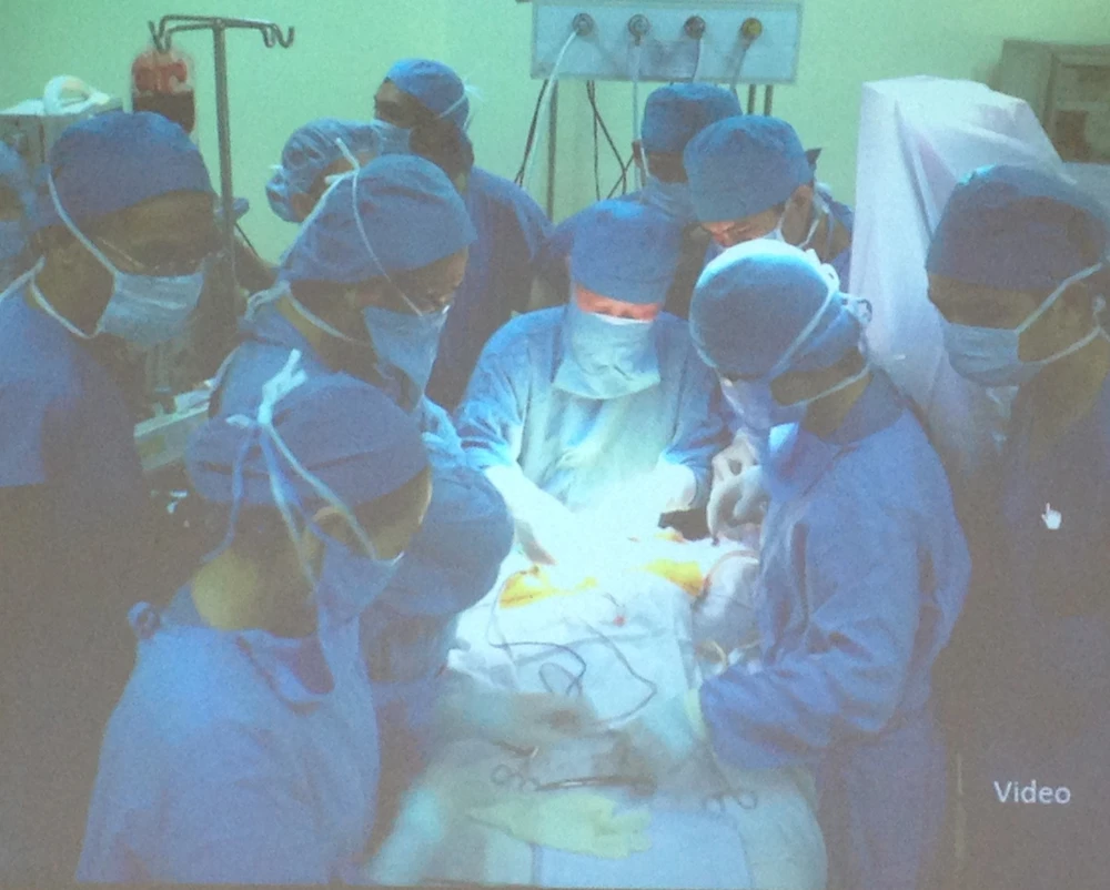 Ca mổ kéo dài 3 giờ đồng hồ để cứu bé sơ sinh bị dao đâm xuyên não. Ảnh: DUY TÍNH.