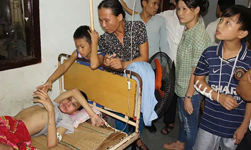 Cháu Nguyễn Anh Tú đang nằm cấp cứu, điều trị vết thương tại bệnh viện.