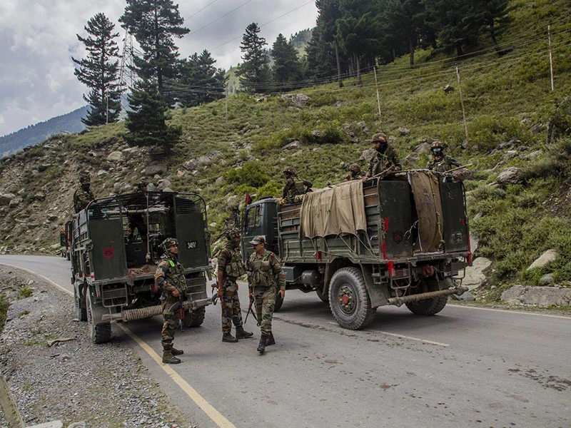 Binh sĩ Ấn Độ tuần tra dọc biên giới vùng Ladakh đang tranh chấp với Trung Quốc hồi tháng 7. Ảnh: AFP
