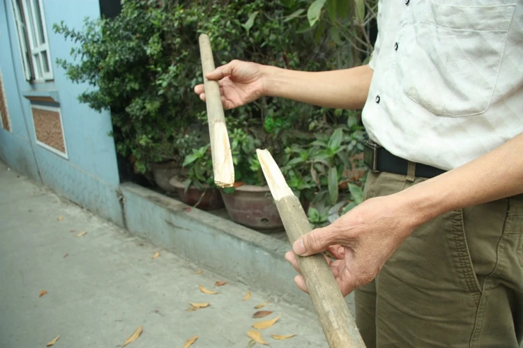 Chiếc gậy sau khi đánh một con chó đã gãy làm đôi.