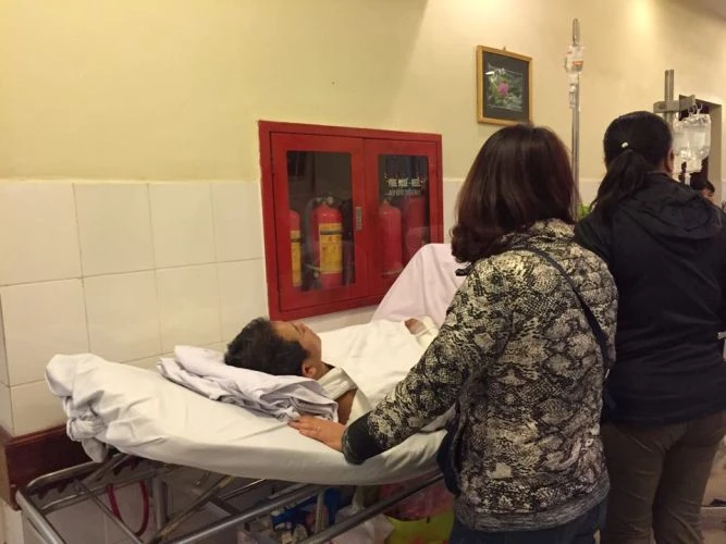 Anh Duy, chủ nhân của bốn con chó tây hiện đang nằm điều trị vết thương tại BV Việt Đức.