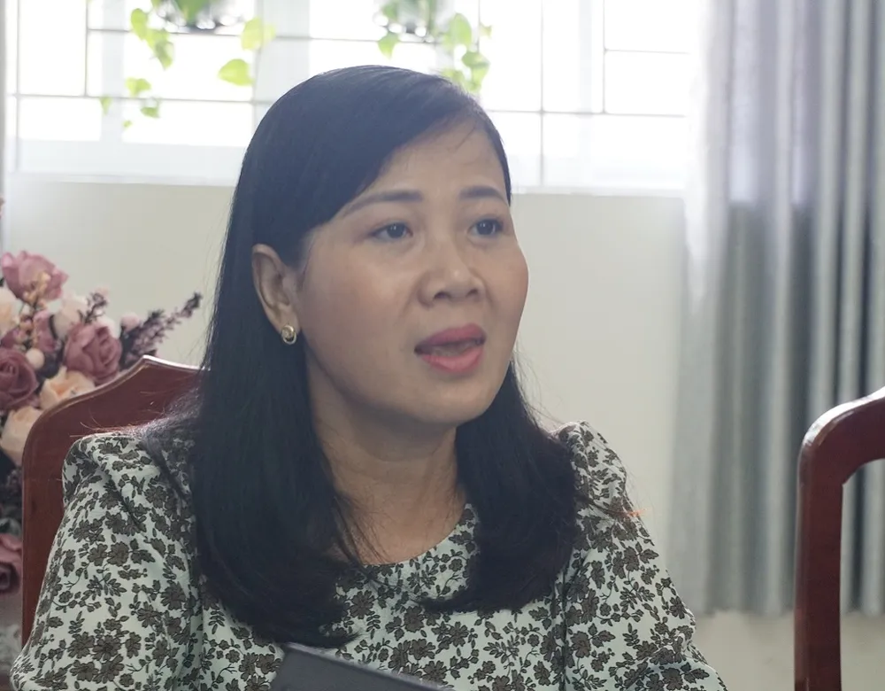 Bà Nguyễn Thị Thu Hương, Hiệu trưởng Trường Tiểu học Trần Thị Bưởi, quận 9 trao đổi thông tin báo chí. Ảnh: NGUYỄN QUYÊN