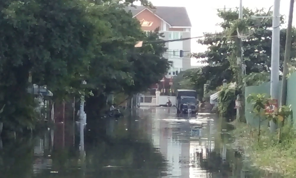 Khu đô thị Nam Long (quận 12, TP.HCM) bị ngập úng sau sự cố hư hỏng hai cống ngăn triều. Ảnh: KB