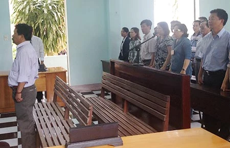 Để buộc tội bị cáo Khanh gây thiệt hại 7,2 triệu đồng, tòa phải mời đến 23 người liên quan. Trong ảnh: Ông Khanh và những người liên quan đang nghe tuyên án. Ảnh: HT
