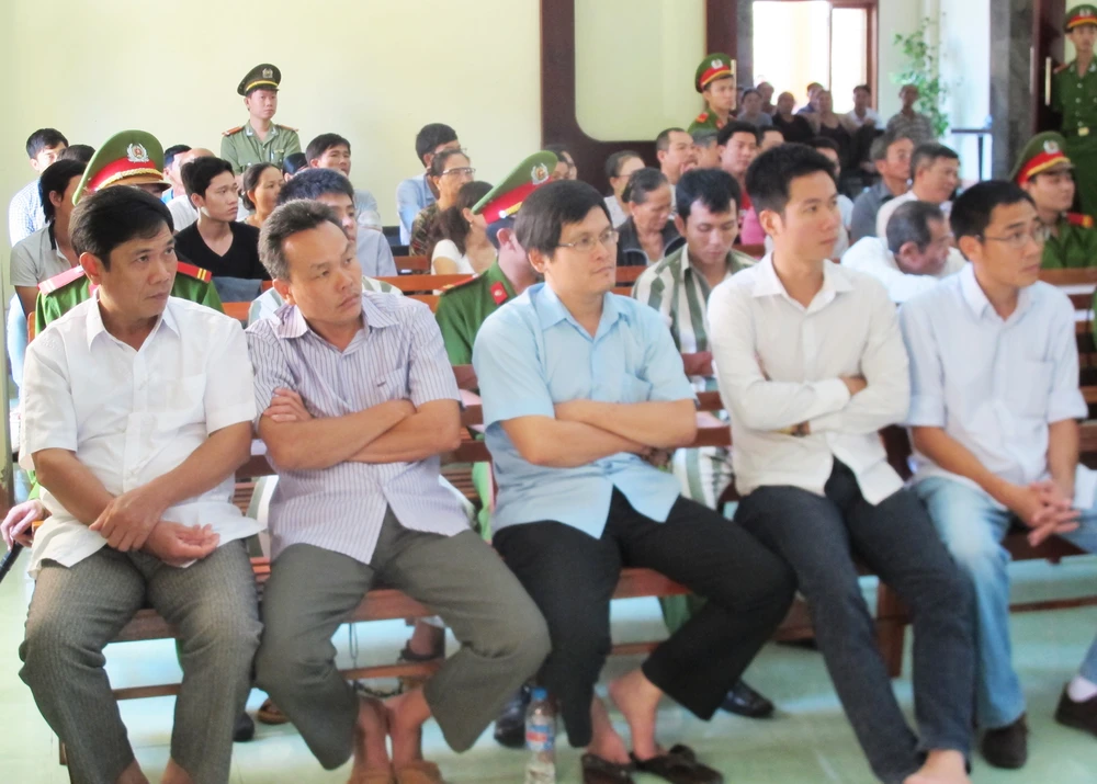 Các bị cáo nghe HĐXX làm rõ tình trạng thương tích của nạn nhân. Ảnh: TL