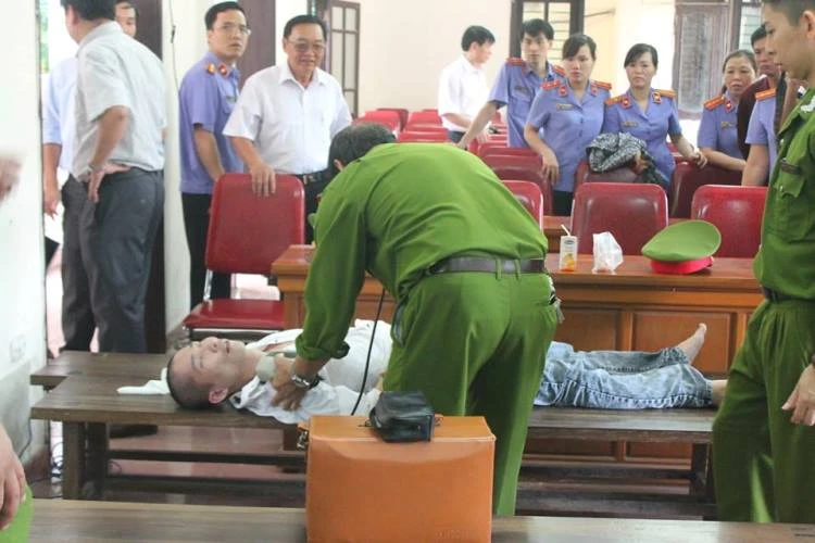 Tuy nhiên tại phần kiểm tra căn cước, khi HĐXX hỏi thì bị cáo Đệ đứng trước vành móng ngựa bỗng dưng lăn đùng ra ngất xỉu, nằm xuống sàn nhà, phiên tòa phải tạm hoãn.Cán bộ cảnh sát bảo vệ phiên tòa đến đưa bị cáo Đệ lên ghế ngồi và gọi điện về Trại tạm giam Công an tỉnh Nghệ An đều bác sĩ đến kiểm tra sức khỏe của bị cáo Đệ.