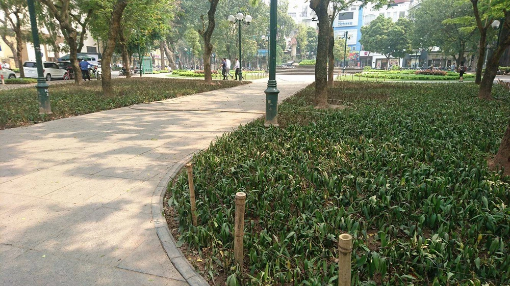 Sau khi nhổ bỏ cọc tre, UBND quận Hoàn Kiếm sẽ chỉ đạo đơn vị cây xanh tiếp tục chăng lưới để bảo vệ vườn hoa.