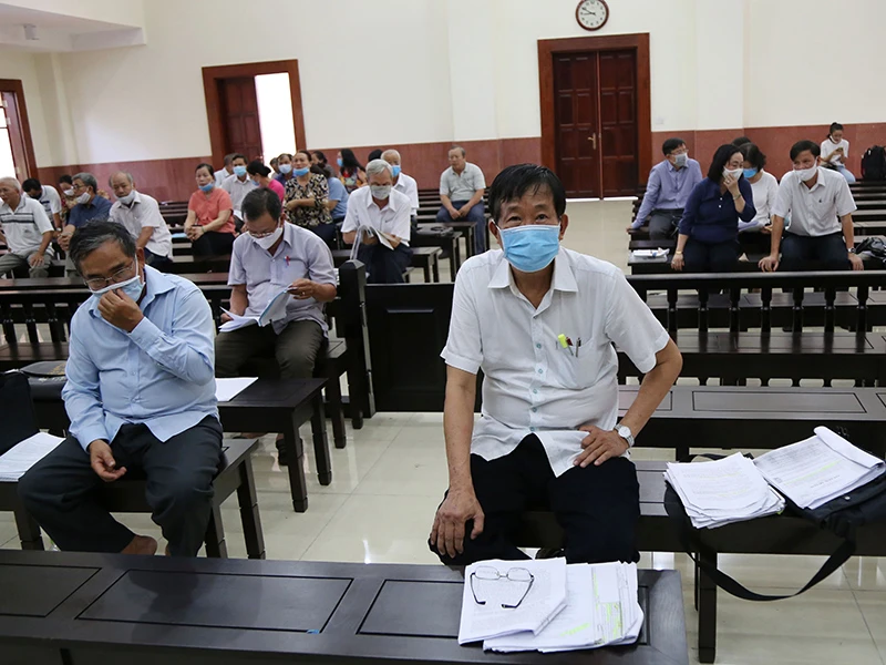 Các bị cáo tại phiên tòa phúc thẩm sáng 28-5. Ảnh: HOÀNG GIANG