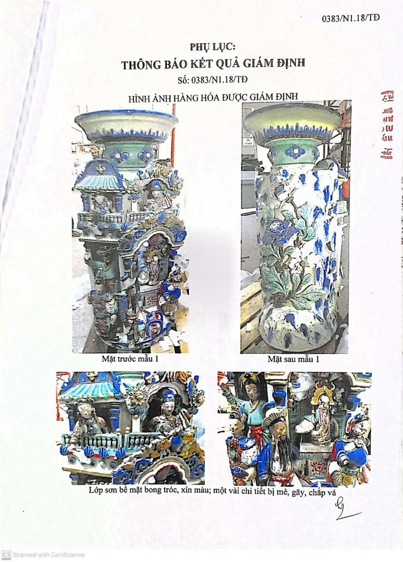 Phòng kiểm tra Văn hóa phẩm xuất nhập khẩu (Sở Văn hóa, Thể thao TP HCM) cũng chỉ ra cặp đôn bằng gốm men nhiều màu, kiểu gốm Sài Gòn xưa dùng để trang trí, đồ giả cổ, mô phỏng một ngôi miếu, có thể hiện hình người và tượng thần hộ pháp là hàng hóa được phép nhập khẩu.