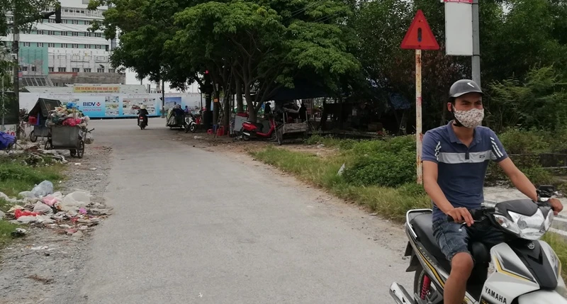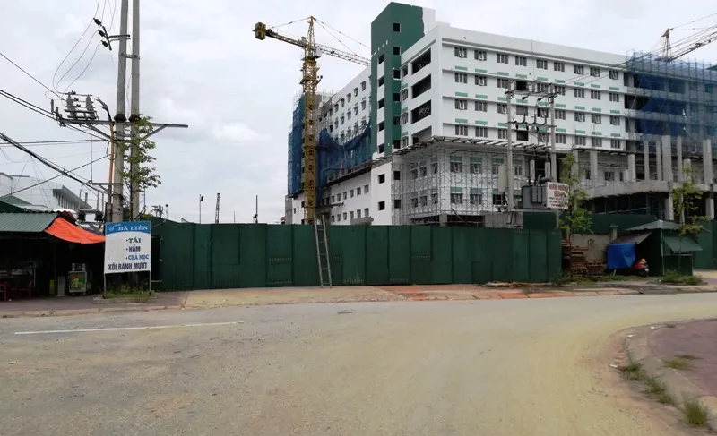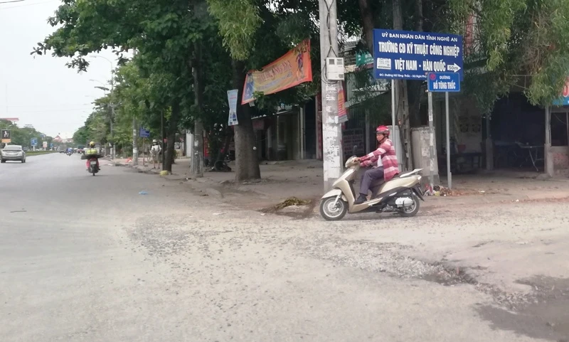 Đường Hồ Tông Thốc hướng nhìn từ xã Nghi Phú sang quốc lộ 1A đã bị đóng ngang xây bệnh viện.