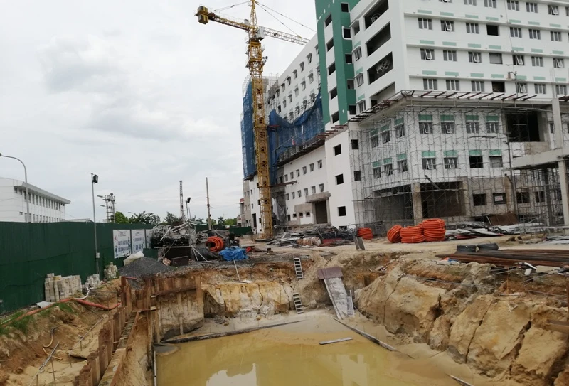 Bên trong công trình cho thấy một phần đường Hồ Tông Thốc đã bị đào sâu.