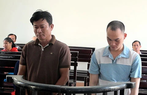 Hai bị cáo Danh (trái) và Thụ tại phiên tòa sơ thẩm mới đây. Ảnh: KP