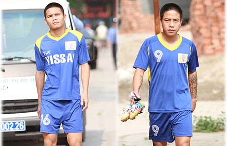 Văn Thắng và Hoàng Danh Ngọc chiều qua vẫn ra sân tập cùng đội. Ảnh: SÔNG HƯƠNG