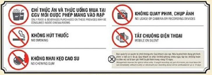 Một số quy định trong rạp phim luôn kèm câu nhắc nhở Ban quản lý có quyền từ chối cho bạn vào rạp