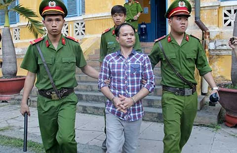 Bị cáo Minh bị dẫn giải ra xe về trại giam sau phiên xử. Ảnh: H.GIANG