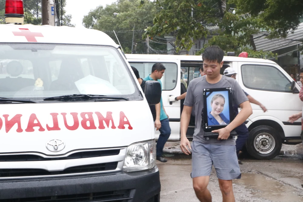 Xe cứu thương đưa thi thể các nạn nhân về nhà xác. Ảnh: LÊ ÁNH