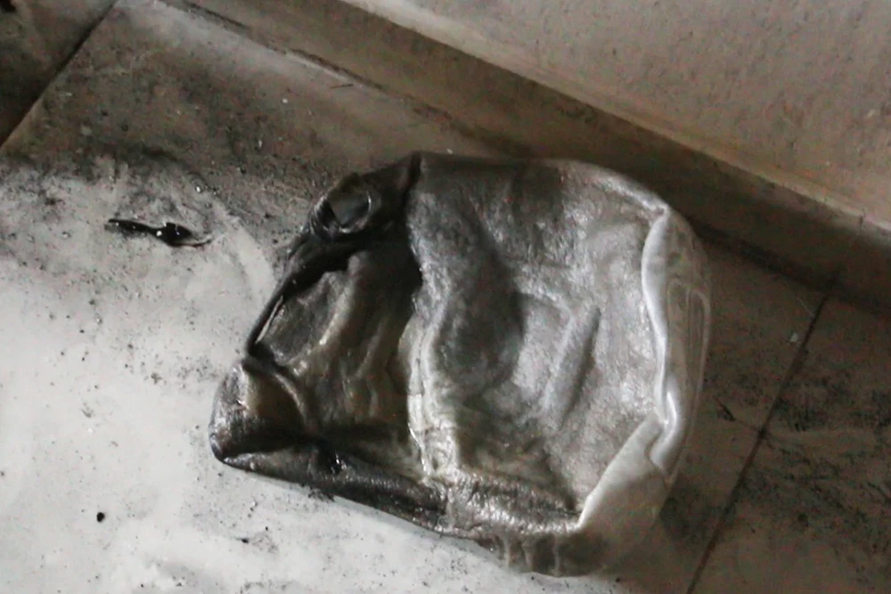 Theo một nguồn tin, sau khi tiếp cận hiện trường, công an phát hiện hai can xăng. Hiện trường nhiều đồ đạc vương vãi, cháy rụi, ám khói.