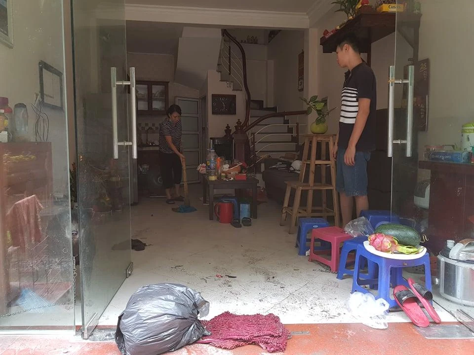 "Toàn bộ tầng 3 và 4 đều bị lửa cháy đen, thiêu rụi tầng tum với điều hòa, máy giặt, máy bơm, quần áo, sách vở... Tường nhà bị nứt toác từ tầng 1 đến tầng 4. Giờ chúng tôi không dám ngủ lại nhà, phải đi ở nhờ. Hai đứa con trai của tôi thì phải thuê nhà nghỉ ở tạm" - bà nói.