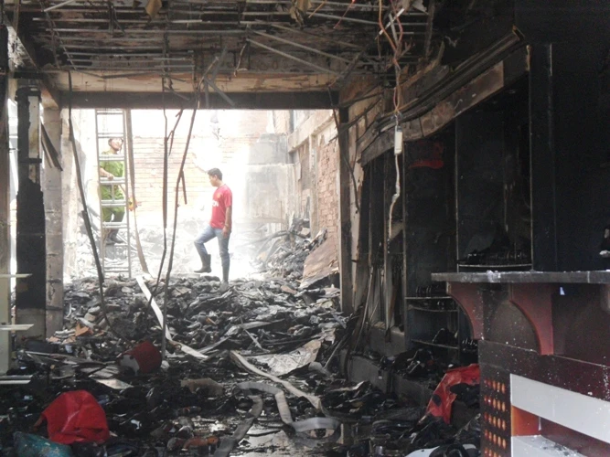 Theo ghi nhận của PV Báo Pháp luật TP.HCM, đến chiều 6-7 hiện trường vụ cháy cừa hàng giày dép MT vẫn còn rất ngổn ngang.