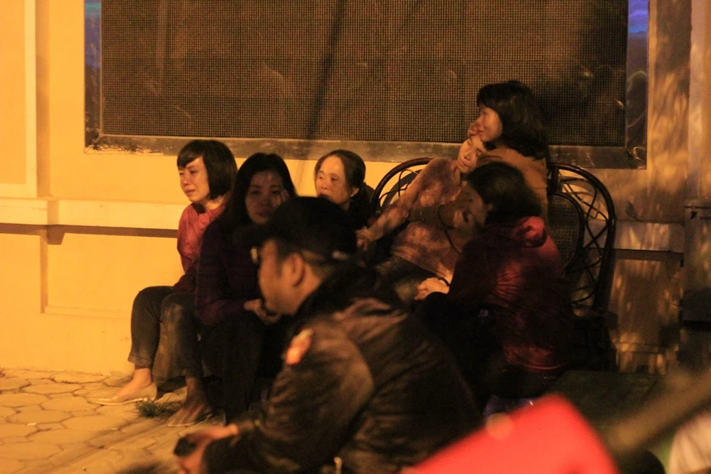 Mặc dù thời tiết ngoài trời khá lạnh nhưng suốt cả đêm qua nhiều người thân, bạn bè của những nạn nhân xấu số trong vụ cháy hôm qua vẫn đứng phía ngoài nơi cánh cửa nhà tang lễ luôn đóng kín, để chờ đợi mong ngóng tin tức.