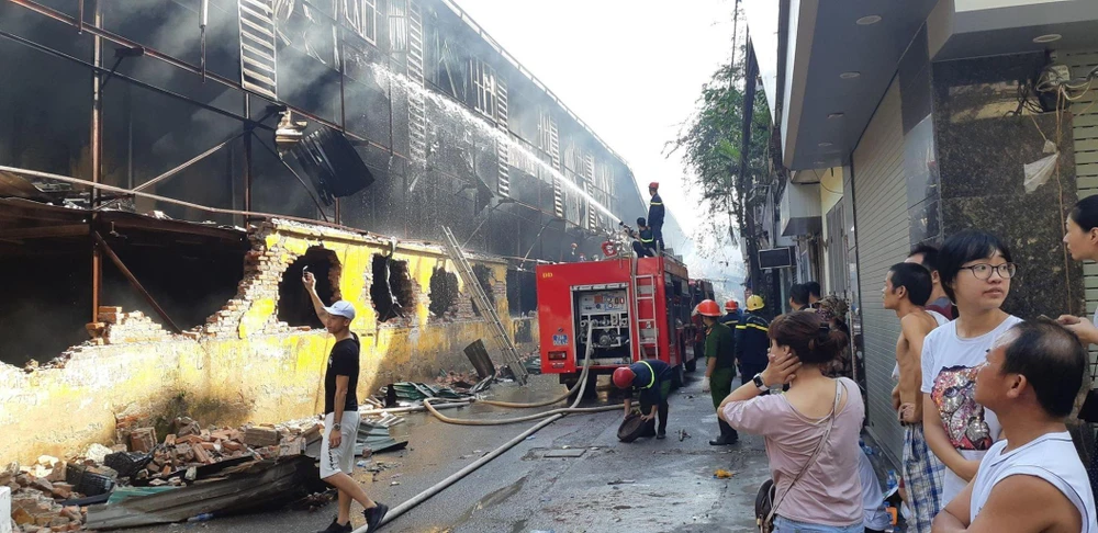 Hiện trường vụ cháy kho hàng Công ty Rạng Đông. Ảnh: VIẾT LONG