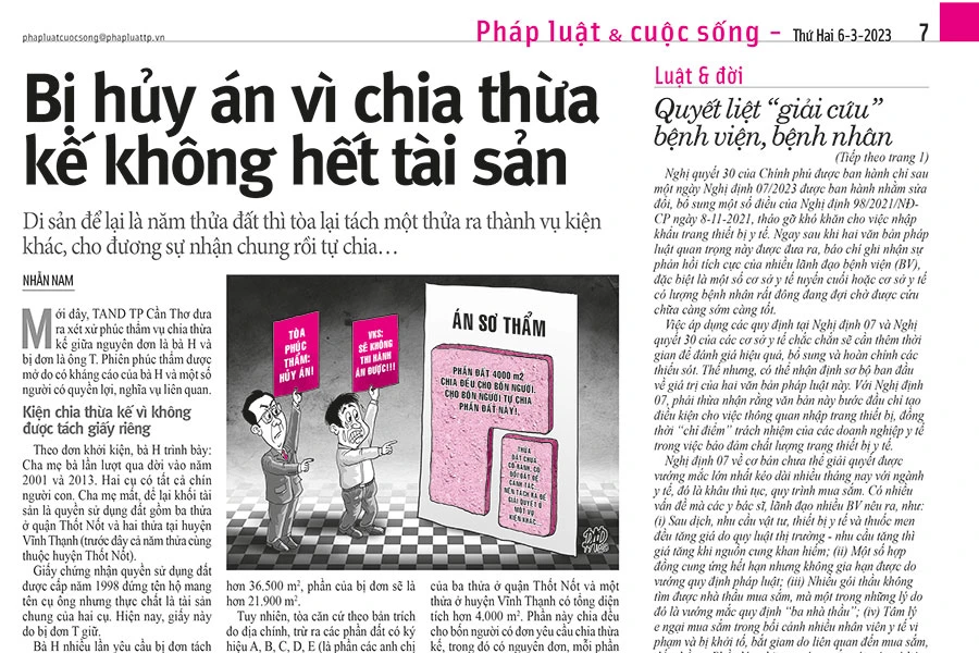 Sau khi báo Pháp Luật TP.HCM số ra ngày 6-3 có bài “Bị hủy án vì chia thừa kế không hết tài sản”, một số ý kiến đã bày tỏ quan điểm đối với việc chia thừa kế của tòa.