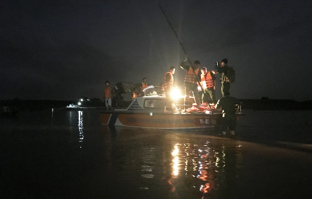 Lực lượng chức năng đang tổ chức tìm kiếm trong đêm. Ảnh: HẢI HIẾU