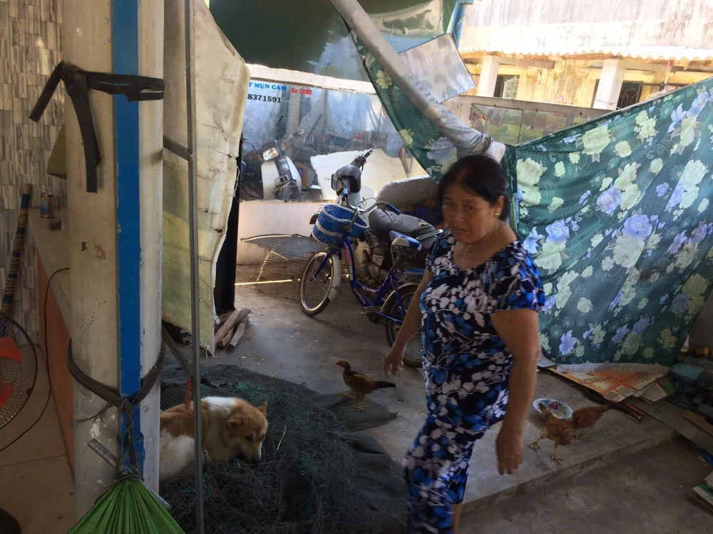 Ghi nhận của chúng tôi tại nhà bà Xuân, con chó đã được xích lại và nằm im tại một góc của ngôi nhà, tuy nhiên con chó vẫn không được rọ mõm.