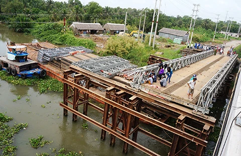 Trưa 22-9, nhiều người dân, bạn bè đến viếng đám tang của chị Võ Hoàng Anh T. (18 tuổi, huyện Bến Lức, Long An), nạn nhân trong vụ rơi cầu tạm bị nước cuốn trôi. Trong ngày, đại diện đơn vị thi công là Công ty Xây dựng Thế Toàn (TP.HCM) đã đến thăm hỏi gia đình nạn nhân nhưng chưa đề cập đến chuyện bồi thường.
