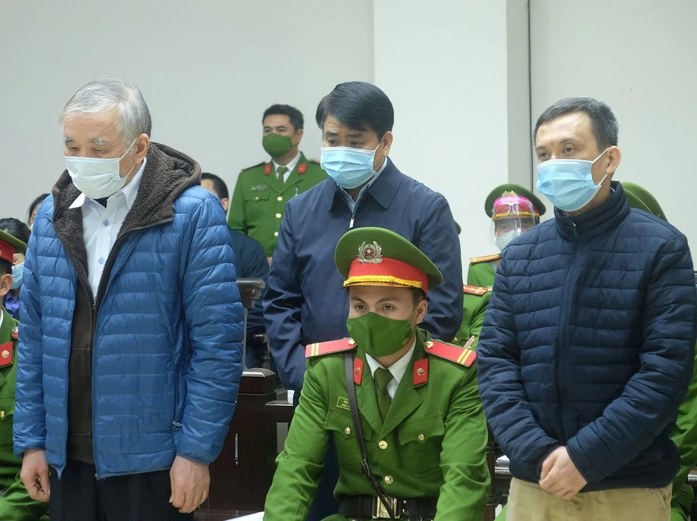 Cựu chủ tịch Nguyễn Đức Chung cùng các bị cáo tại tòa.