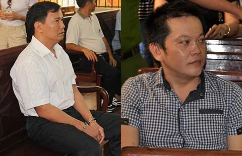 Bị cáo Vinh (trái) và nhân chứng Chí (phải) tại phiên tòa. Ảnh: NHÓM PV