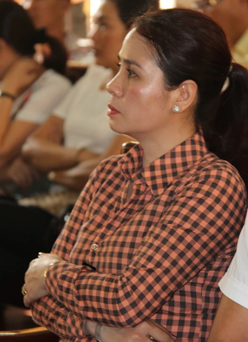 Vợ của thiếu tá Sơn (áo caro, hàng ghế đầu) có mặt tại tòa từ sớm