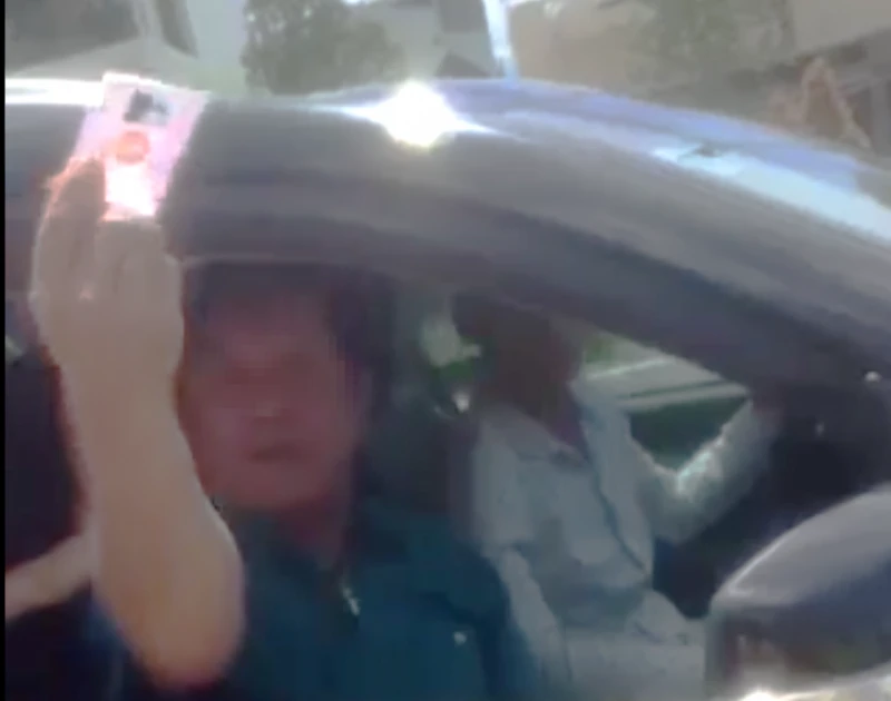 Người đàn ông ngồi trong xe chìa tấm thẻ cho CSGT. (Ảnh cắt từ clip)