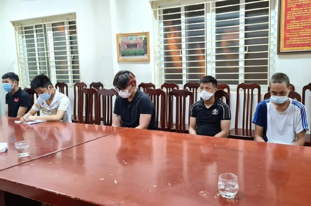 Năm nghi phạm tại cơ quan công an. Ảnh: ANTĐ