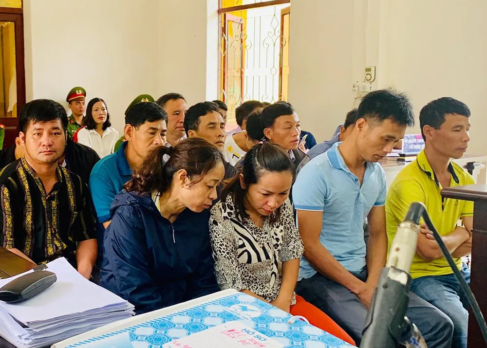 Các bị cáo trong vụ án đánh bạc đang bị TAND huyện Tuần Giáo xét xử. Ảnh: TP