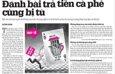 Trước hết, nhìn ở góc độ pháp lý, tôi cho rằng việc xử lý hình sự bị cáo Thu là không sai luật. Bởi Điều 248 BLHS và Điều 1 Nghị quyết 01/2010 (của Hội đồng Thẩm phán TAND Tối cao hướng dẫn về tội đánh bạc) quy định: “Người nào đánh bạc dưới bất kỳ hình thức nào được thua bằng tiền hay hiện vật... mà không được cơ quan nhà nước có thẩm quyền cho phép... có giá trị từ 2 triệu đồng đến dưới 50 triệu đồng hoặc dưới 2 triệu đồng nhưng đã bị kết án về tội này thì bị...”.