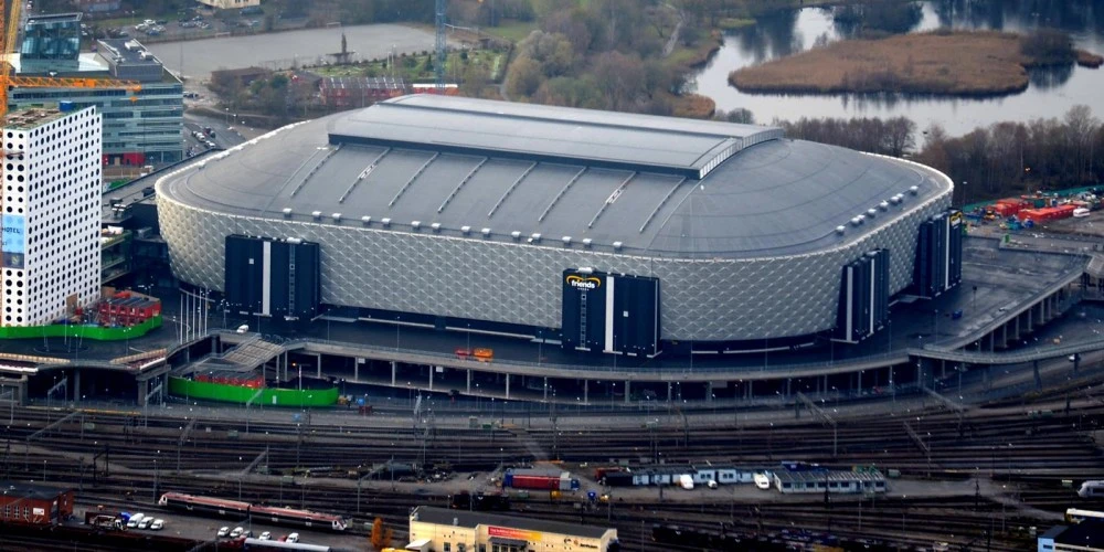 Sân Friends Arena nhìn từ bên ngoài với mái che di động