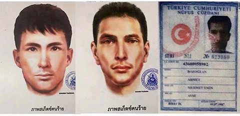 Nghi can thứ hai bị bắt ở tỉnh Sa Kaeo ngày 1-9 và ba lệnh truy nã mới liên quan đến các nghi can Thổ Nhĩ Kỳ (ảnh dưới). Ảnh: BANGKOK POST