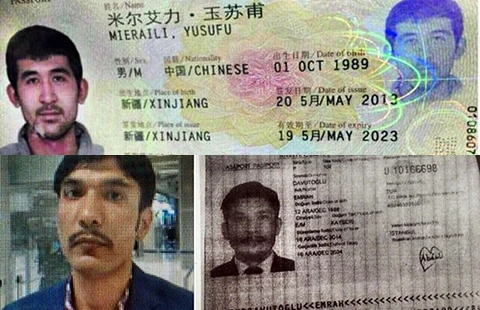 Hộ chiếu Trung Quốc của người tên Yusufu Mieraili, 25 tuổi (ảnh trên) và Emrah Davutoglu, chồng nghi can Wanna Suansan (ảnh dưới). Ảnh: BANGKOK POST