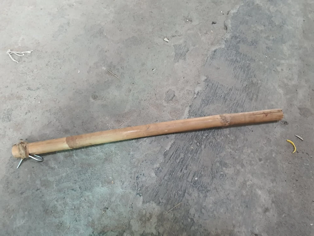Cây tre mà người bố sử dụng để đánh bé. Ảnh: HT