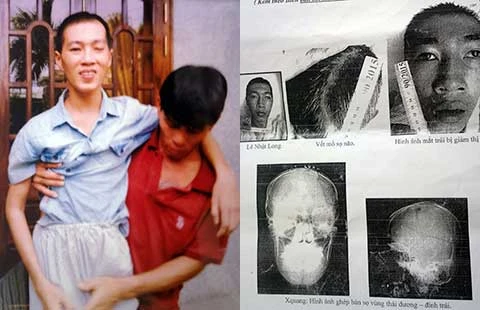 Nạn nhân Lê Văn Long (ảnh 1) và bản ảnh giám định pháp y của nạn nhân (ảnh 2). Ảnh: P.NAM