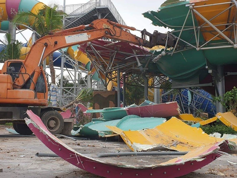 Nhiều kết cấu của công trình công viên nước có thể di dời, tận dung được bị lực lượng cưỡng chế đập phá.