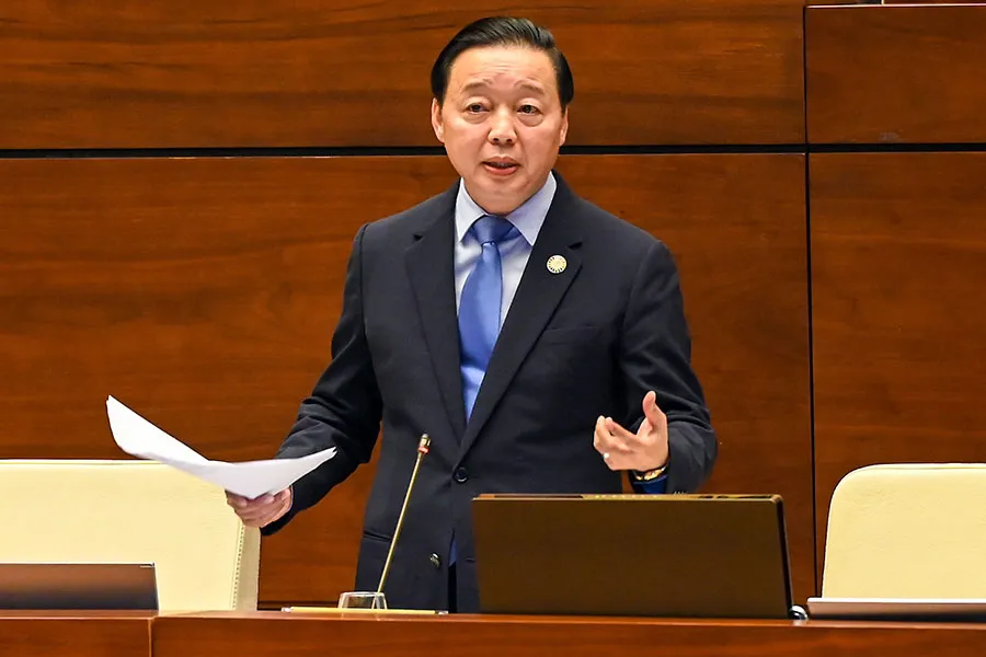 Bộ trưởng Bộ TN&MT Trần Hồng Hà đang trả lời chất vấn. Ảnh: PHÚ NGUYỆT